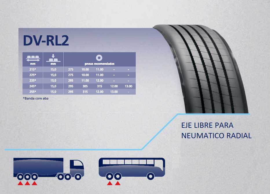 Banda de rodamiento con diseño exclusivo Vipal para neumáticos radiales en ejes libres.